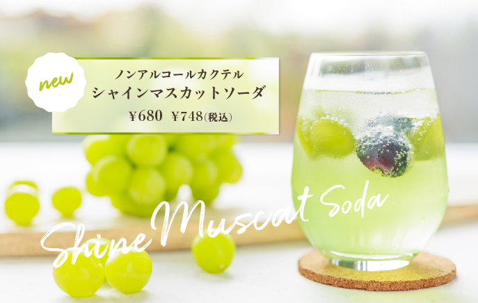 さらに、さっぱり楽しめる「シャインマスカットソーダ」も登場。食後のリフレッシュやカフェタイムにぴったりです。
