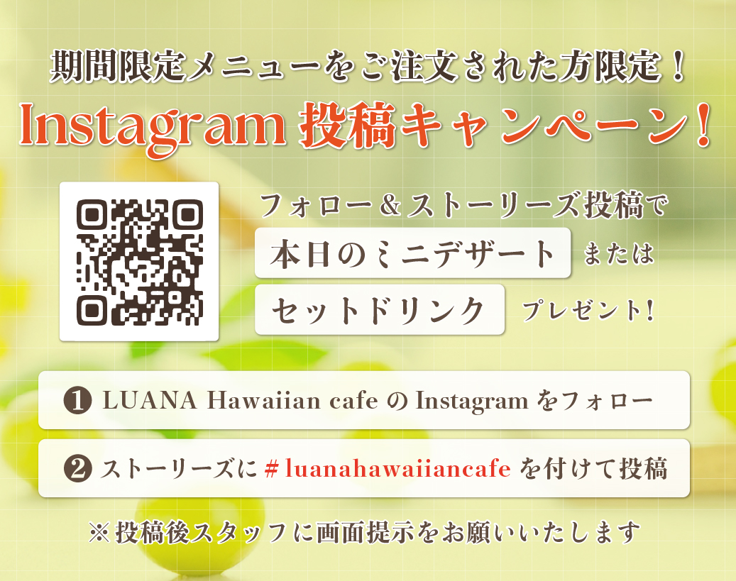LUANA Hawaiian Caféでは、9月26日より「シャインマスカットフェア」がスタートします!