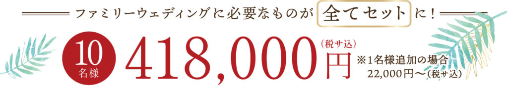 10名様 418,000円(税込)から必要なものは、すべて揃っています